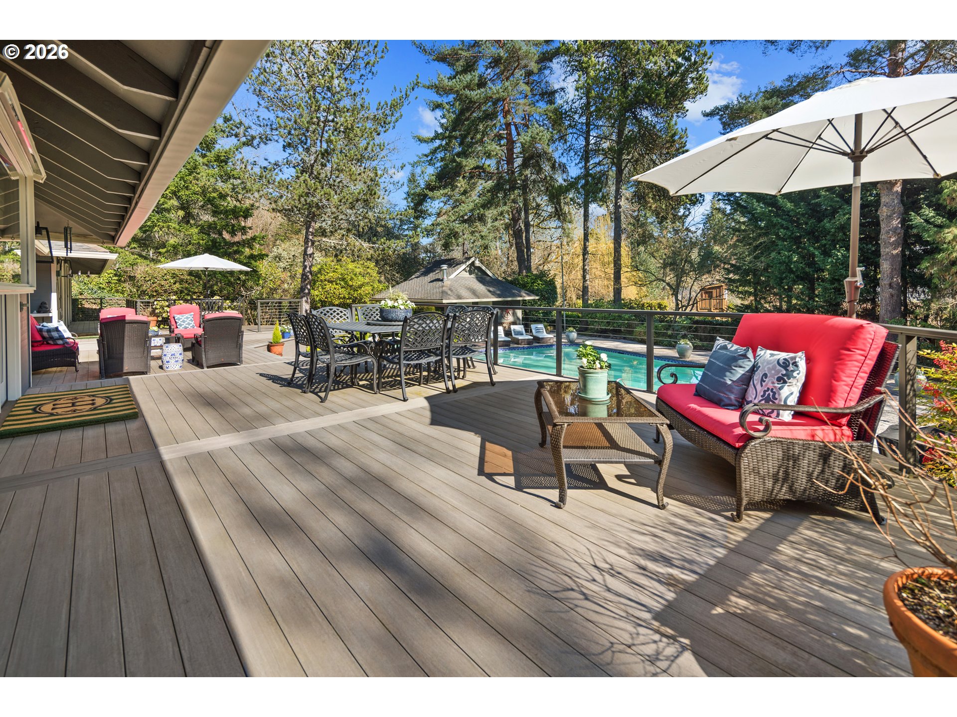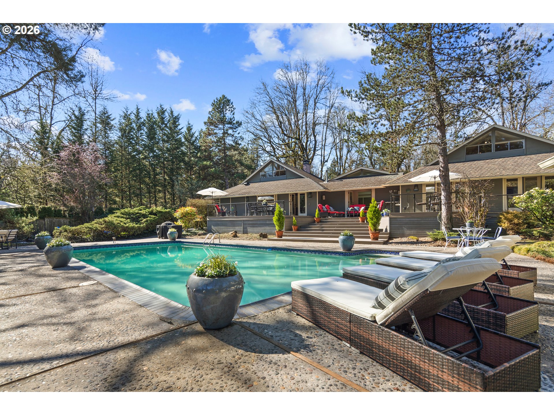 - Polished Contemporary in the Heart of DunthorpeAn iconic modern masterpiece designed by visionary architect Joseph Eichler, one of the nation's most influential builders of modern homes. This home is ideally situated in the heart of the coveted Dunthorpe neighborhood in Portland. Impeccably maintained and thoughtfully curated, this light-infused residence celebrates walls of glass, soaring lines, and seamless indoor-outdoor living at its finest.A dramatic gabled atrium and formal living room serves as the architectural showpiece—an unforgettable centerpiece that floods the home with natural light and creates an extraordinary space for gathering and entertaining. With mostly main level living, every room feels connected to the lush, private .83 acre grounds, where a resort-style pool and large entertaining deck elevate daily living to a true lifestyle experience.The primary suite on the main is a serene retreat, offering tranquil garden views and effortless comfort. Recent, sophisticated renovations honor the home’s timeless modern design, highlighted by a stunning gourmet kitchen and a beautifully reimagined family room—perfectly suited for both intimate evenings and vibrant celebrations.Rare. Architectural. Exceptional. This is a singular opportunity to own a design-forward residence that masterfully balances form, function, and elevated living in the heart of Dunthorpe.With its coveted Dunthorpe location, expansive land feel, and a thoughtful blend of elegance and comfort, this home is a rare opportunity to enjoy classic Portland living at its finest.