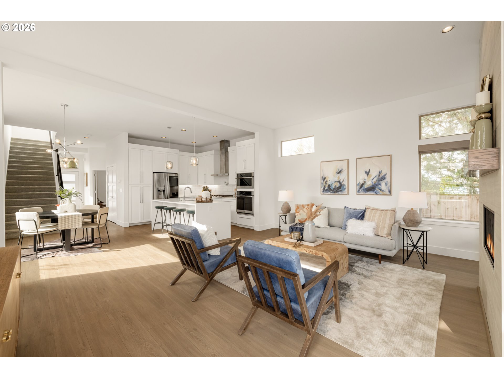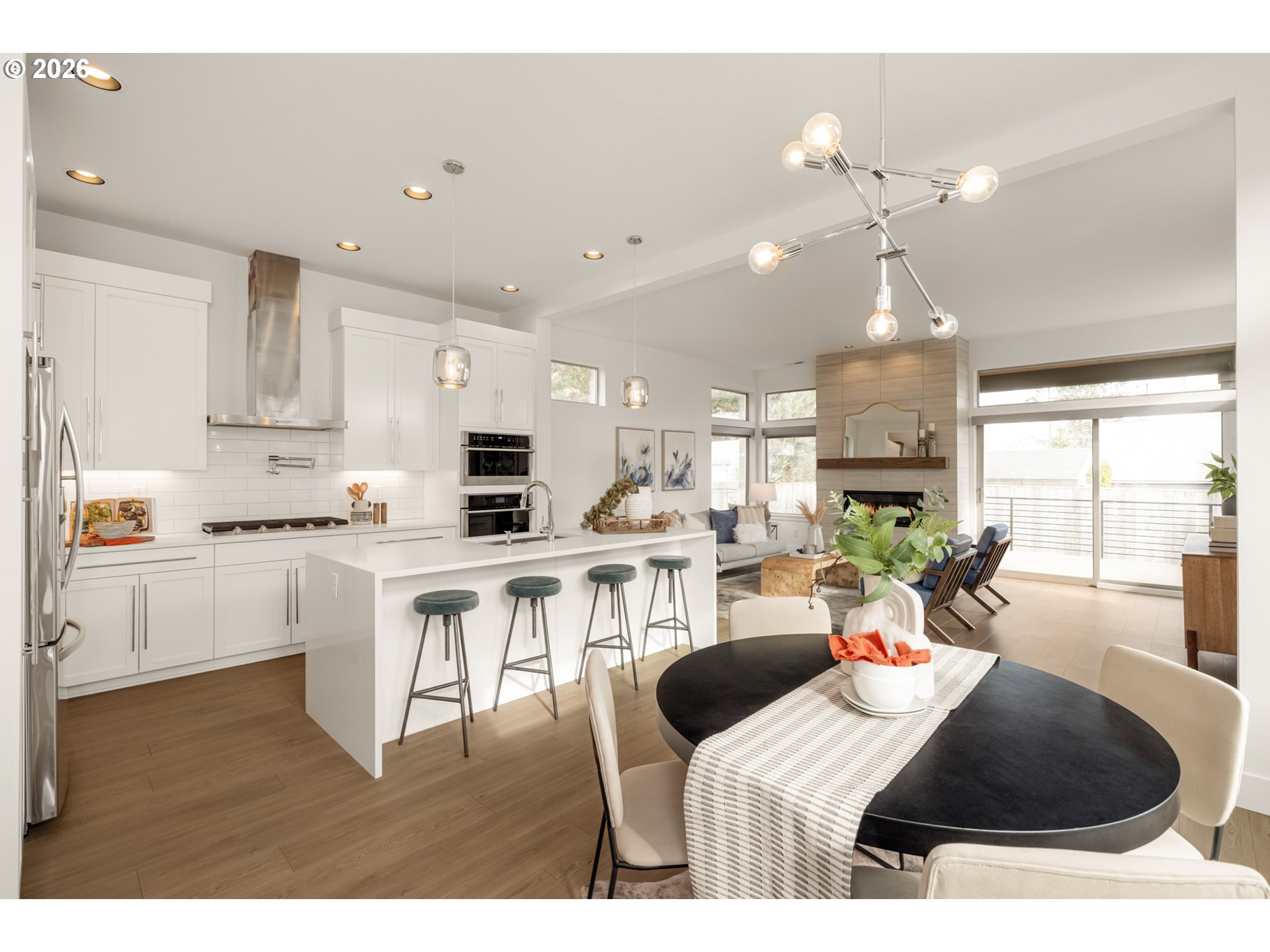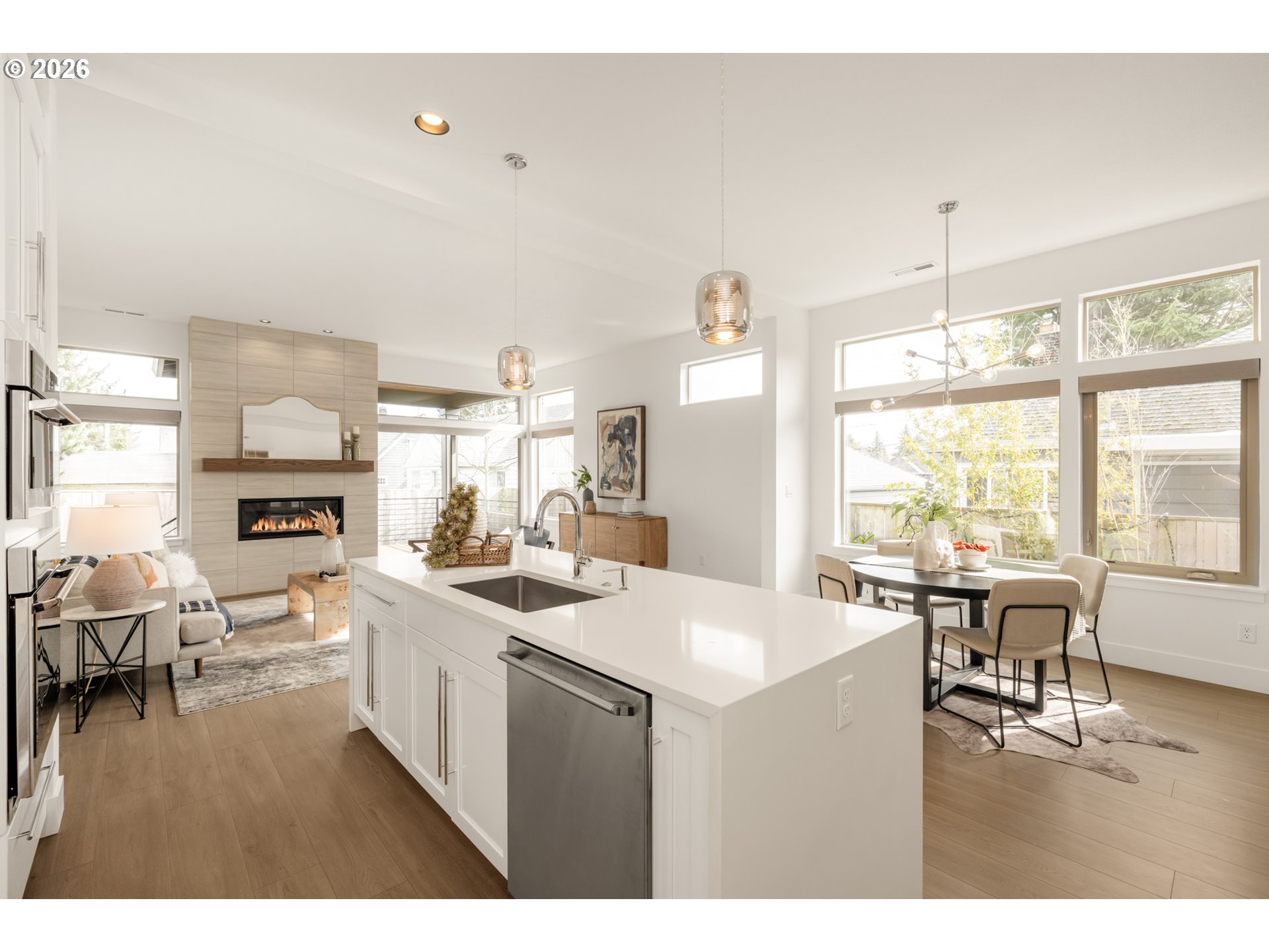 - Elevate your life with this one-of-a-kind modern contemporary home! Enjoy all the perks of newer construction: beautiful modern finishes, convenience around every corner and total peace of mind. It’s an entertainer’s dream! A covered front porch framed by two stone columns greets your guests upon arrival before sweeping them through double doors into the dazzling, light-filled entry. Down the hall a gourmet kitchen awaits, with an eight foot cascading quartz island with seating for four, classic subway tile backsplash, a built-in oven and gas cooktop with a pot filler and plenty of cabinet space for all your kitchen gadgets. The modern living room draws you in with soaring 10ft ceilings, luxury laminate flooring, large windows everywhere you look, a centerpiece gas fireplace and a sliding door out to the covered deck. Upstairs, your dream primary suite - with no shared walls, an ensuite bathroom and a large walk-in closet it feels like your own private wing of the house. The luxurious ensuite has a soaking tub and separate shower, crisp modern finishes and relationship-saving features like a spacious double vanity and private water closet. All in Charming University Park! Walking distance to New Seasons, McKenna Park and Starbucks - minutes to University of Portland and all the food and fun in St Johns, Overlook and downtown Kenton. Forest Park adventures await just across the river! [Home Energy Score = 6. HES Report at https://rpt.greenbuildingregistry.com/hes/OR10200558]