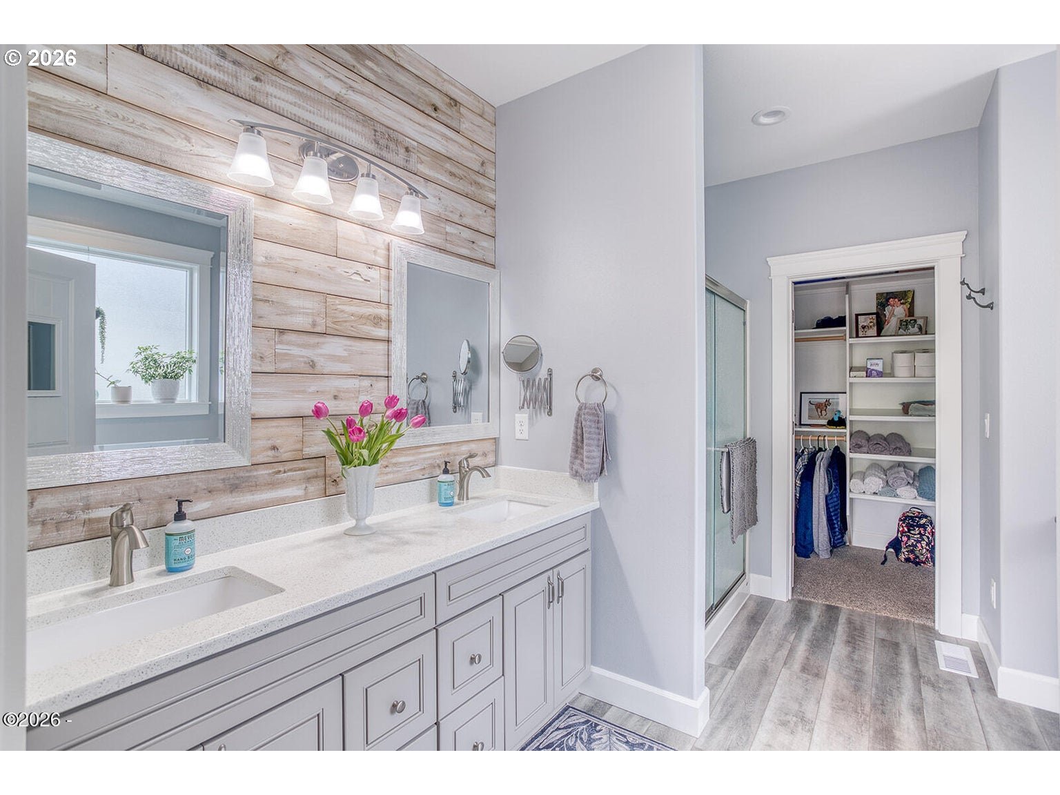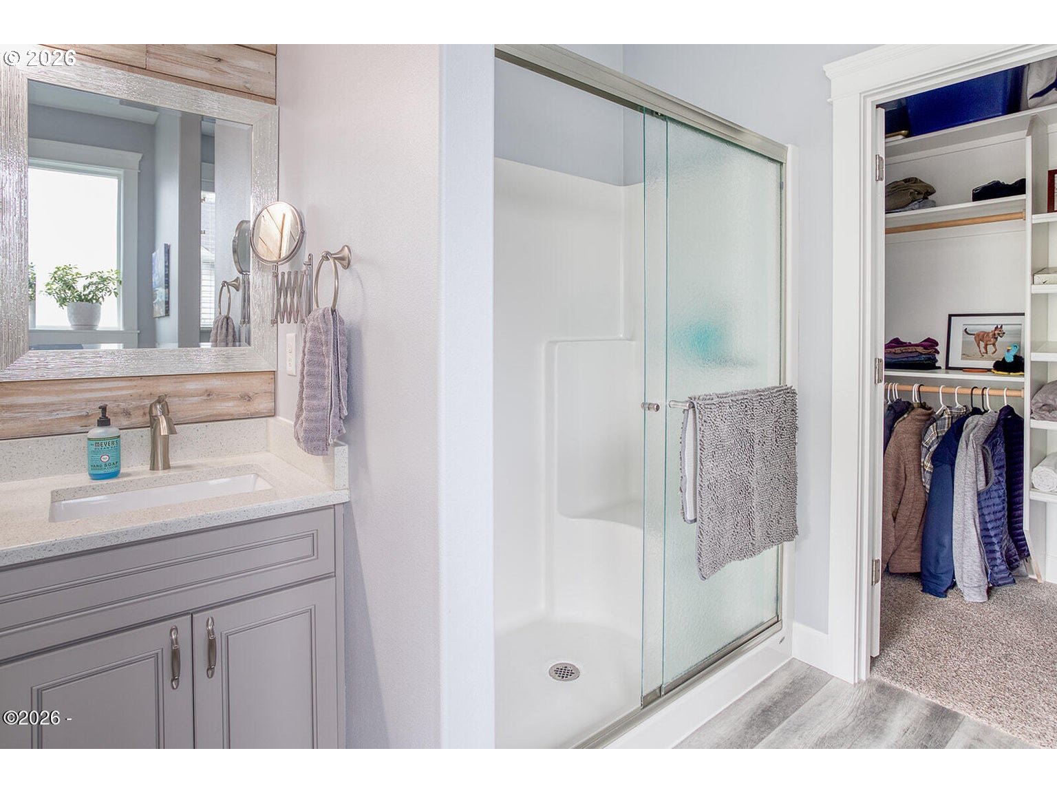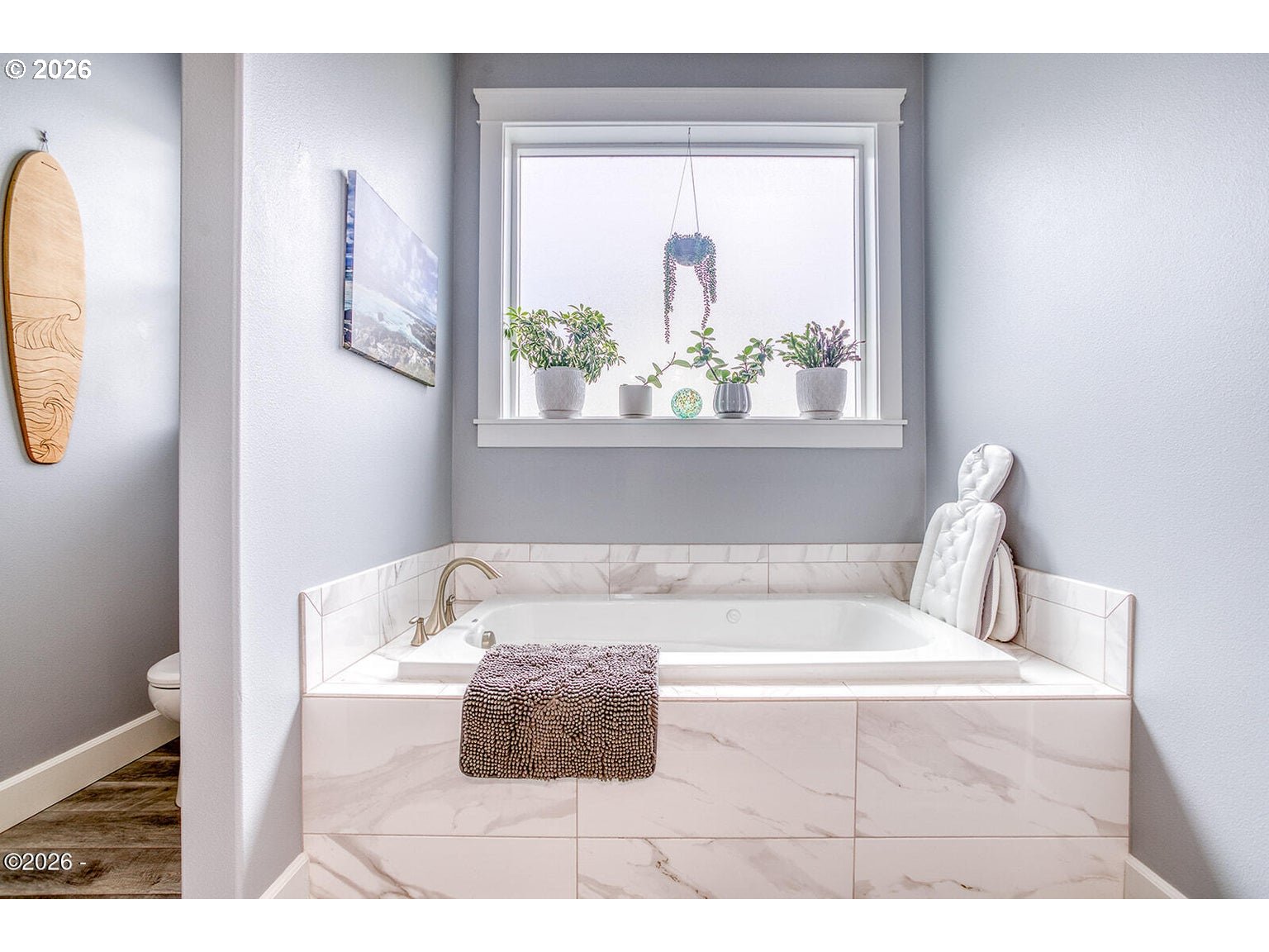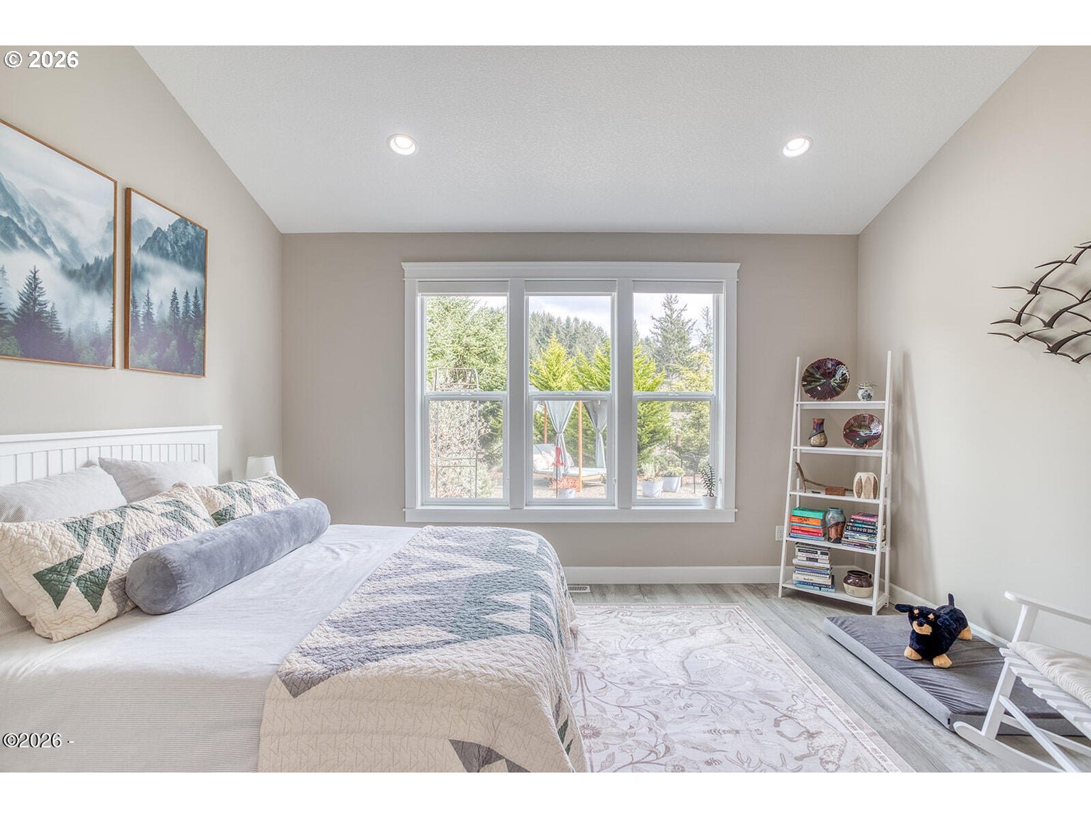 - Beautifully maintained single-level home offering move-in ready coastal living. The open-concept design features vaulted ceilings, a reclaimed barn wood accent wall, and a cozy gas fireplace. The kitchen includes a gas range, custom soft-close wood cabinetry with crown molding, quartz countertops, and a large island ideal for cooking and gathering. Matching quartz surfaces continue through both bathrooms and the laundry room. The spacious primary suite features a jetted soaking tub, dual sinks, and a large walk-in closet. Generous storage is found throughout the home with large closets and a pantry. Durable Coretec LVP flooring and extra insulation in interior walls add comfort and sound reduction. Recent improvements include central air conditioning (2023), new dishwasher (2024), new refrigerator (2025), low-maintenance landscaping (2025), and the entire exterior freshly painted (2025). The oversized electrical panel allows for future additions such as a hot tub or RV connection. The fully fenced backyard includes a covered patio, fire pit area, raised garden beds, and forest views. Custom blinds lift completely to preserve the natural scenery. Located outside the tsunami zone and just minutes from beach access at Road's End State Park via the Sal-La-Sea Trail, with nearby access to the Knoll and God's Thumb hiking trails. Two-car garage and convenient access to Lincoln City amenities.