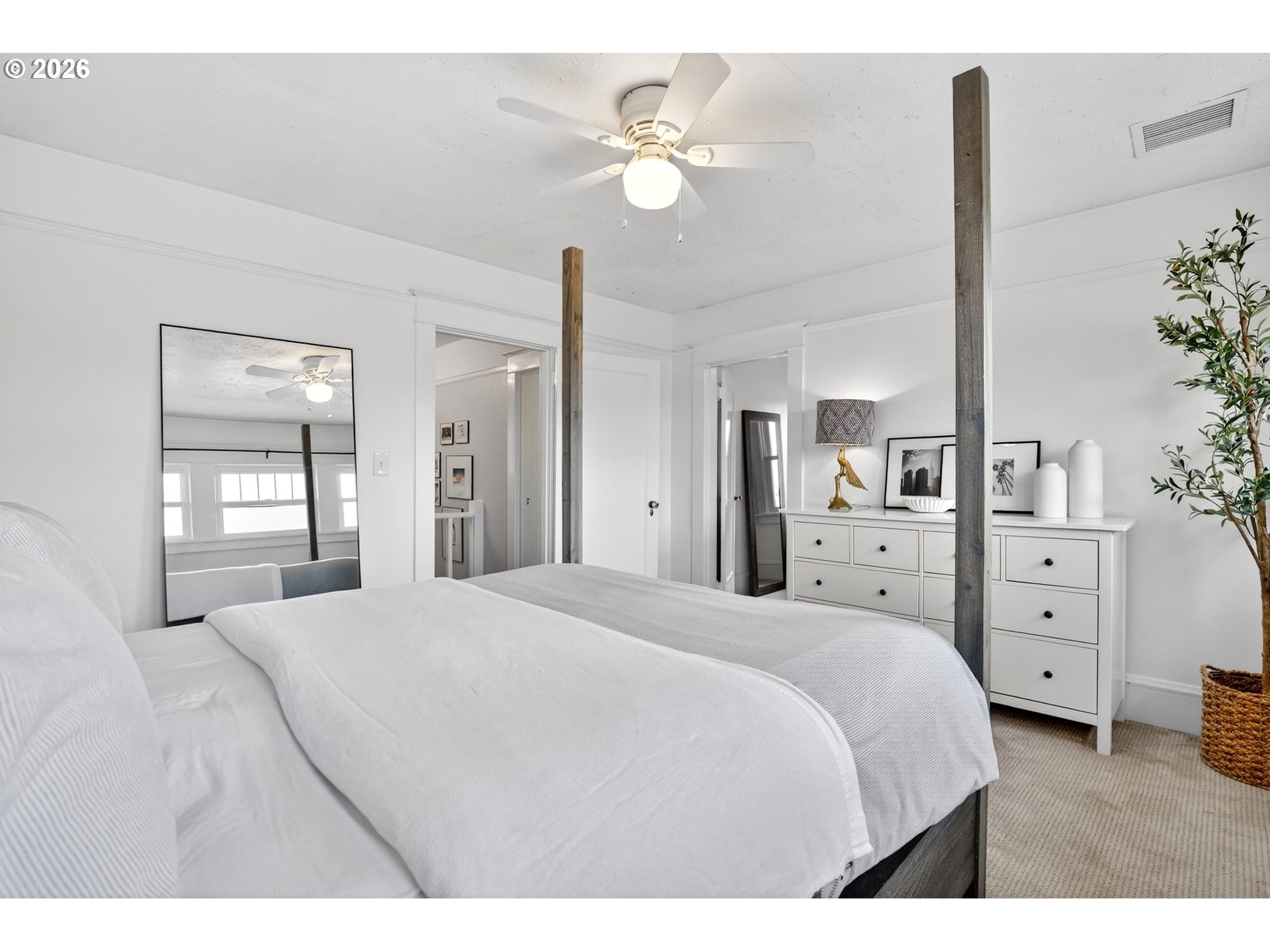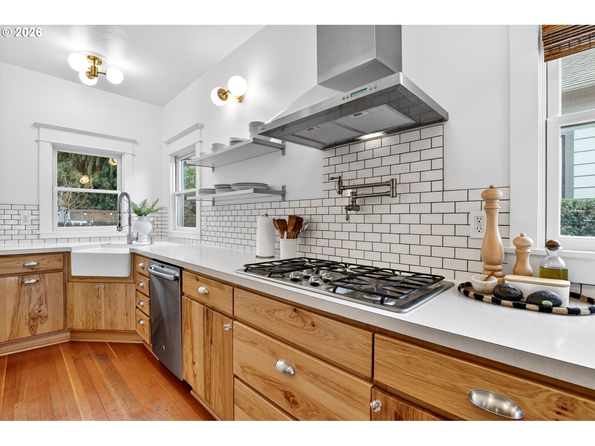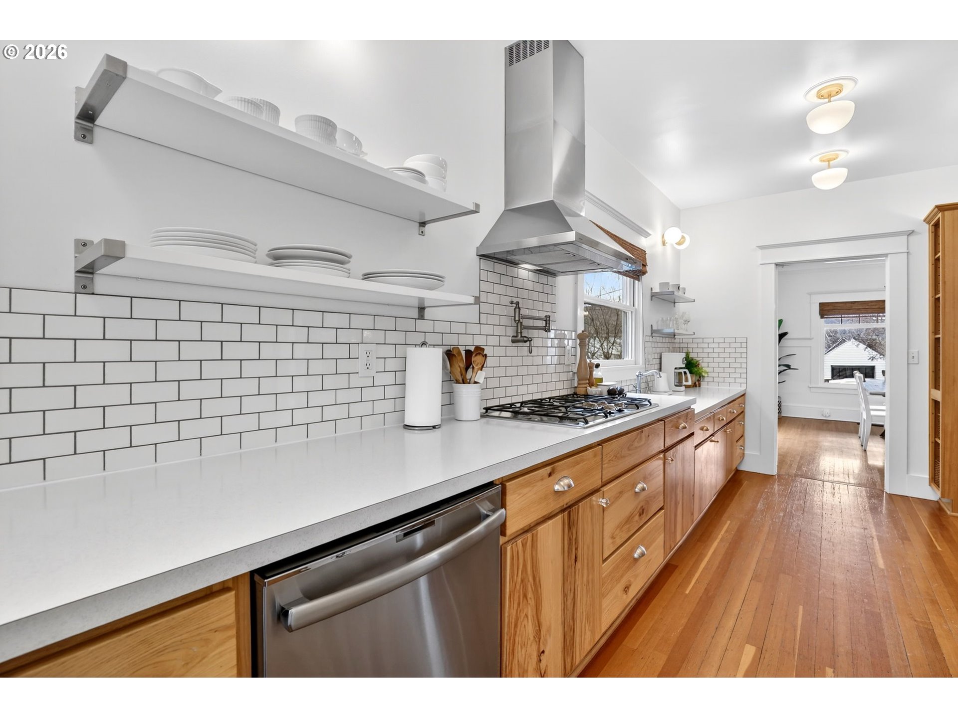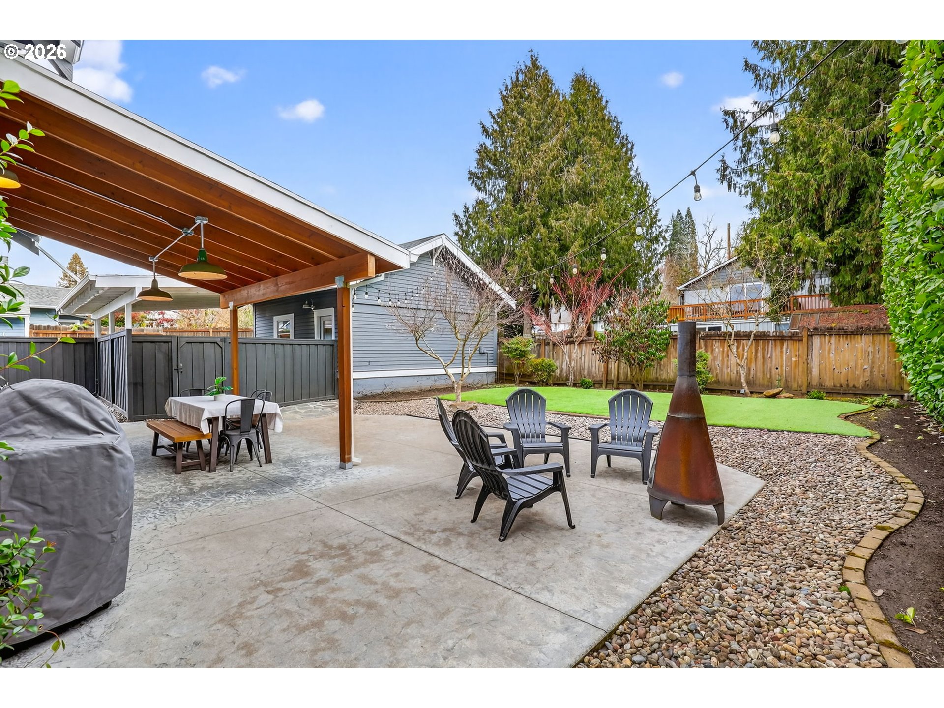 - Step onto the welcoming front porch and immediately feel the timeless charm of this rare historic bungalow in Oregon City. Lovingly maintained over the years, this home reflects a true pride of ownership that is felt from the moment you arrive. Inside, natural light fills the living and dining rooms where a cozy woodstove creates a warm and inviting gathering space, perfect for relaxing at the end of the day or hosting friends and family. The beautifully updated kitchen has been thoughtfully designed with rich hickory cabinets, a farmhouse sink, and quality finishes throughout. It is a space that blends the character of the home’s era with modern function. Also included on the main level is a comfortable bedroom and an office that is ideal for working from home, hobbies, or a quiet retreat. Upstairs you will find three additional bedrooms with walk-in closets and an impressive bathroom featuring a walk-in shower, soaking tub, and heated floors. The dry basement provides excellent storage and flexibility. Outside, the property continues to impress with a detached garage and its own electric meter that is well suited for projects or a workshop. A carport and additional parking area offer plenty of space for guests. The fenced backyard and covered patio create a wonderful setting for summer evenings, outdoor dining, and relaxed entertaining. Located in the heart of the McLoughlin Historic District, this home is just a short stroll to the library, coffee shops, restaurants, and local shops in downtown Oregon City. A truly special home where history, comfort, and lifestyle come together. Come see it in person and fall in love.