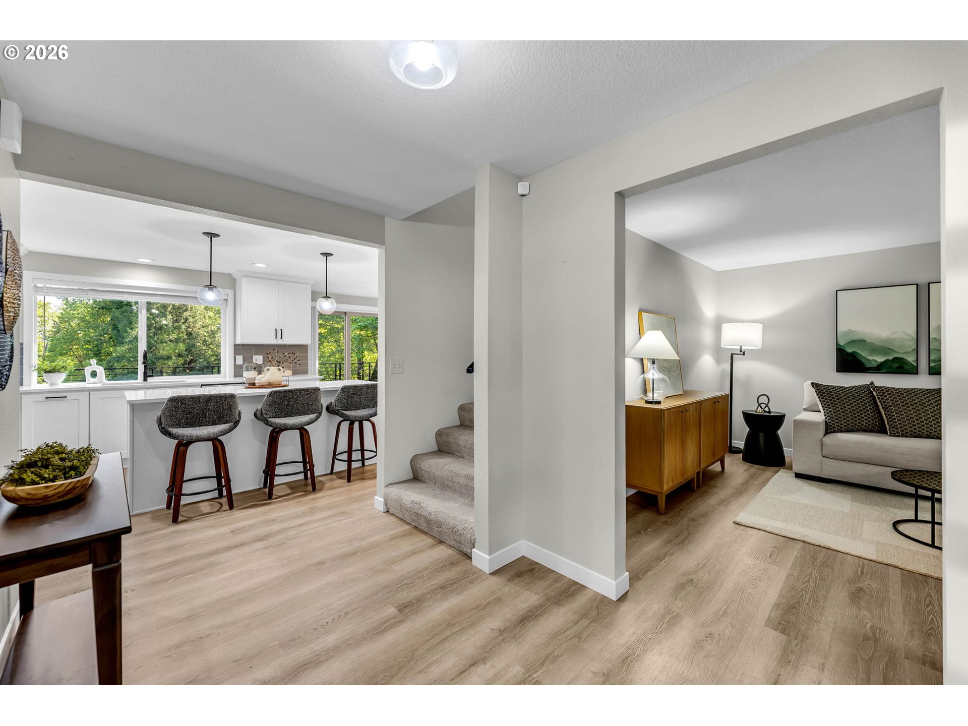 - Experience elevated living in this fully renovated modern farmhouse, perfectly positioned to capture breathtaking views of the Columbia River PLUS a short walk around the corner to beach access on the river! This spacious 5 bedroom home includes a dedicated office and a versatile den, ideal for work or relaxation. The heart of the home - a stunning kitchen - showcases beautiful quartz countertops, high-end finishes, and an open layout designed for entertaining. Want to enjoy the view? Just open the slider and walk out onto the large deck! A beautifully appointed mother-in-law suite offers its own full kitchen, bedroom, and laundry—perfect for extended family or guests. The bathrooms are a design lover’s dream that are so stylish, you’ll find yourself pausing just to take them in.Set on a serene half-acre of lush, landscaped grounds framed by towering trees, this property offers both privacy and beauty. Located just .3 miles from the freeway and 2 miles from all the Columbia Tech Center has to offer, enjoy quick access to top-tier shopping, dining, and everyday conveniences.