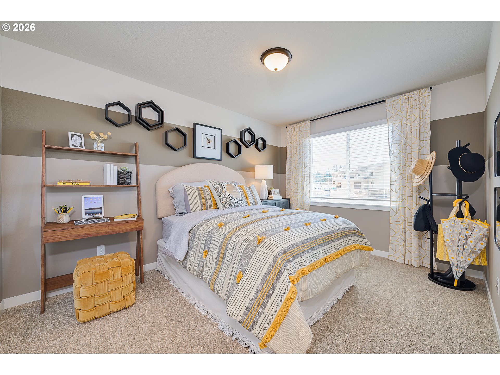 This Timber Grove home in Sandy, Oregon, offers 2,676 sq. ft. of open, family-friendly living space designed for entertaining. The chef-inspired kitchen features slab countertops, a GE gas range, painted cabinets, and ample counter space that opens to a great room and dining area filled with natural light. Upstairs includes a flexible loft space, a primary suite with a soaking tub, tile shower and large walk-in closet, plus a downstairs den/bedroom with a full bath. The large, covered patio and spacious grassed lot provide perfect outdoor living.