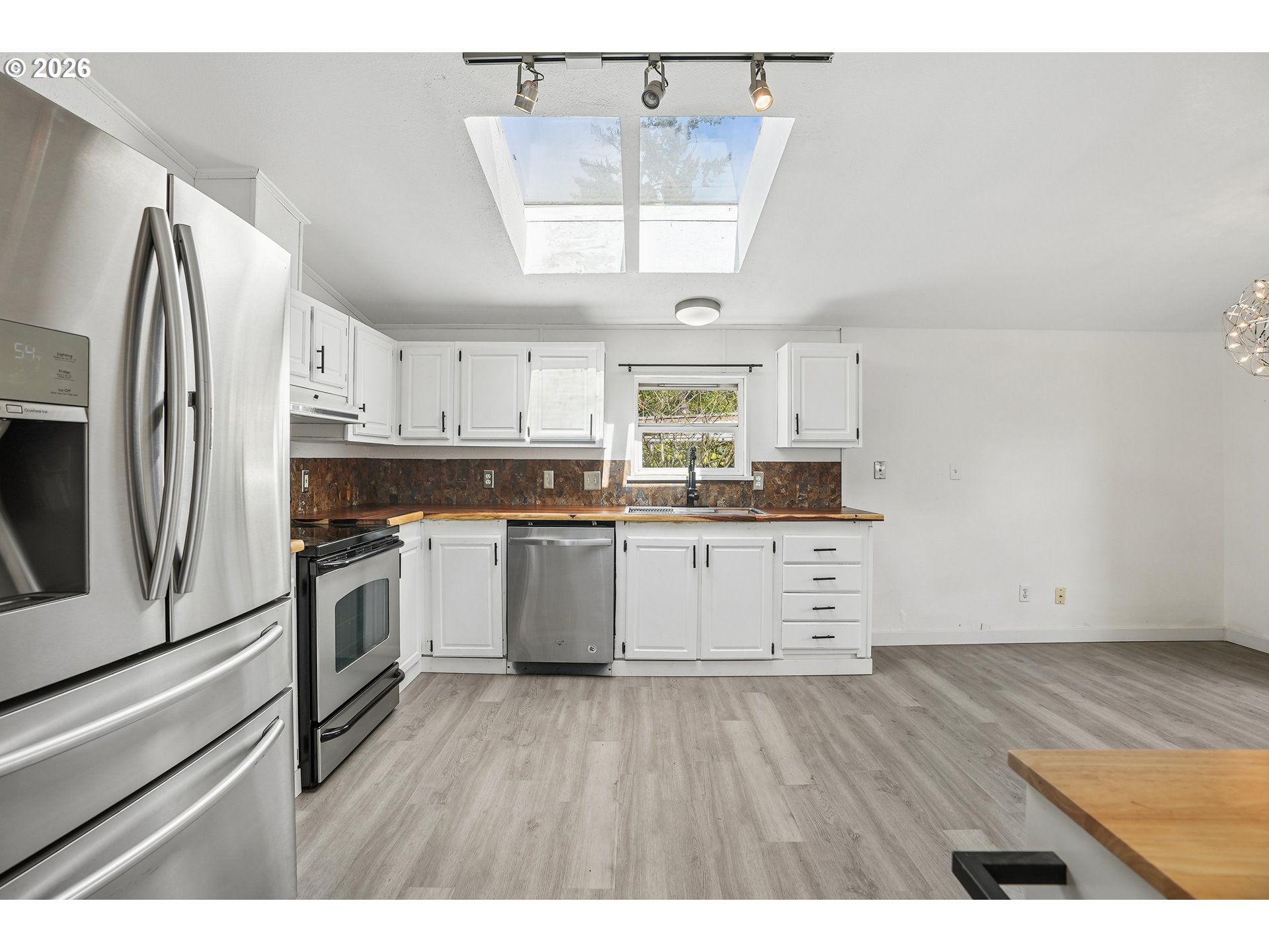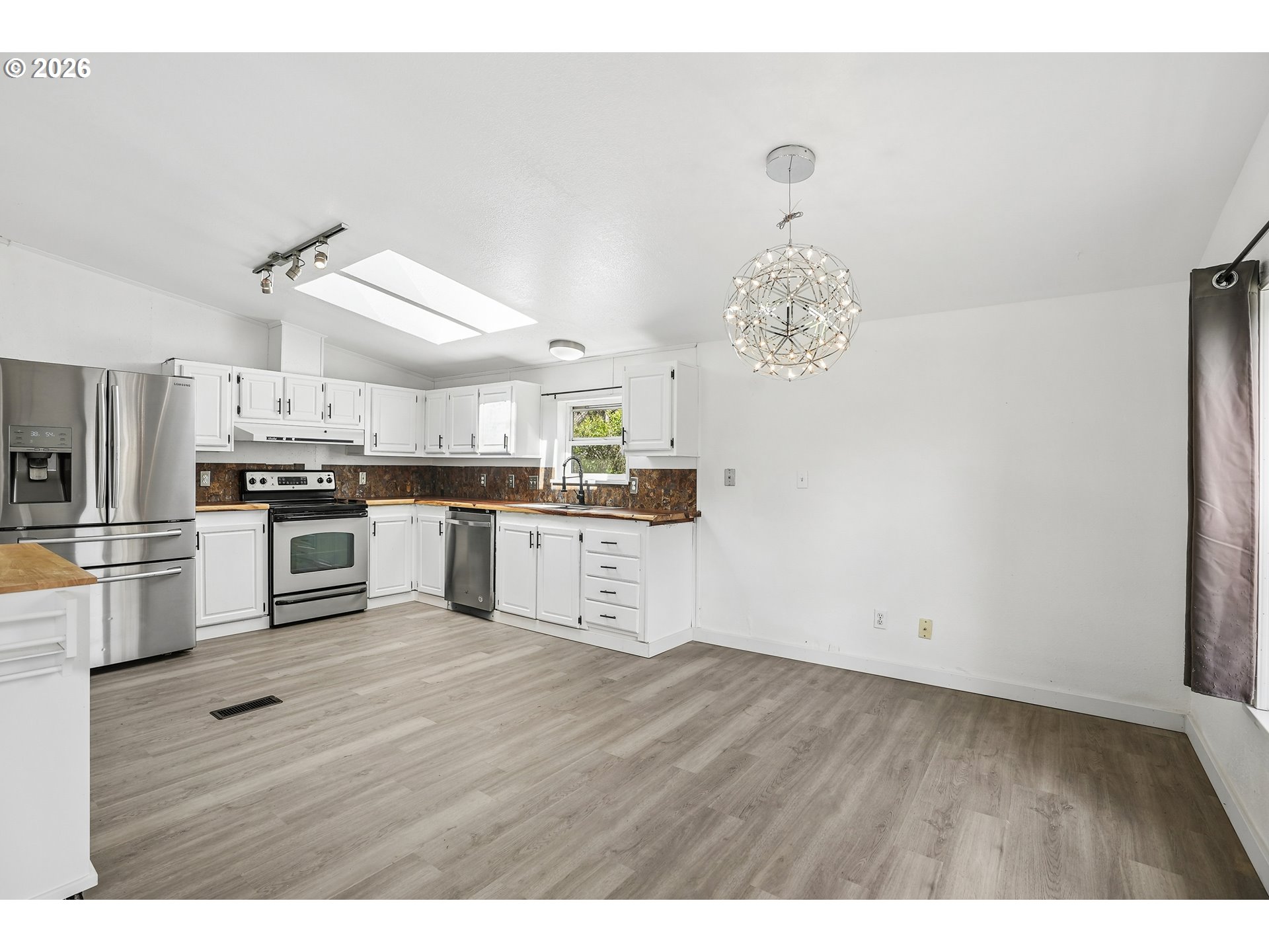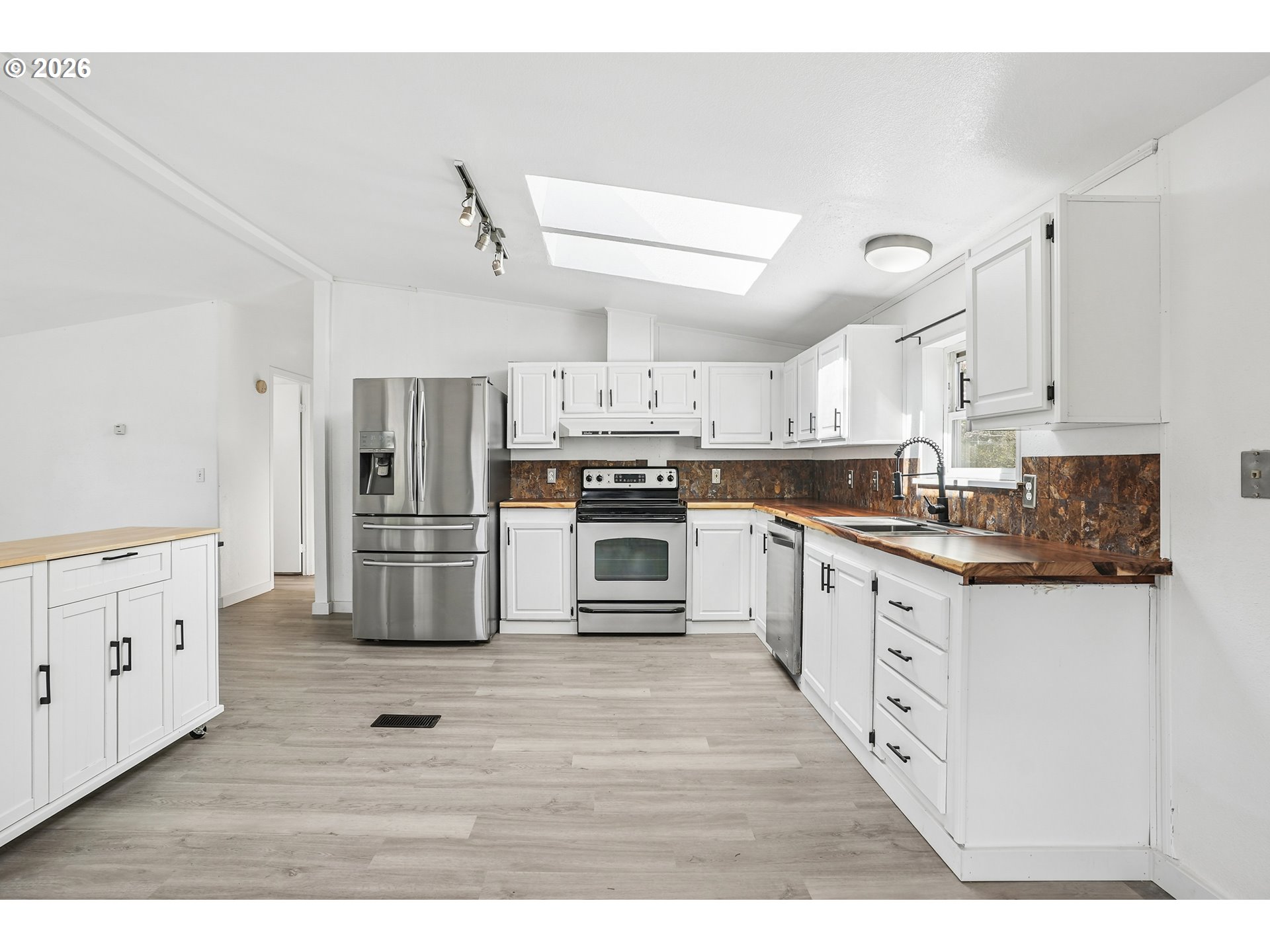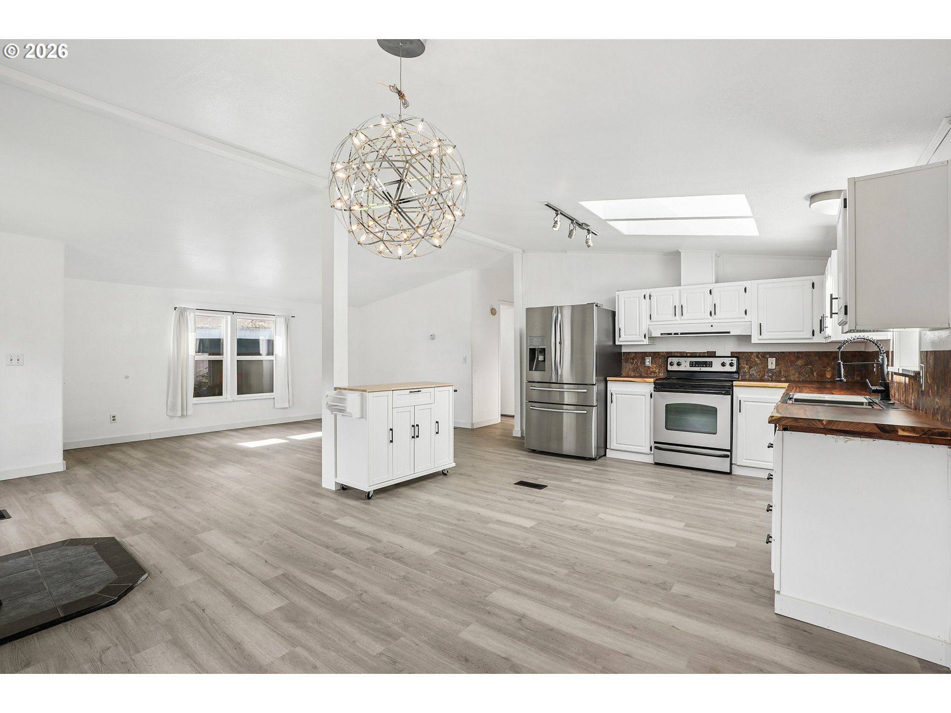 - Location, location, location! In the heart of Oregon City with shopping, dining and public transit just steps away. Step inside to this beautifully remodeled home that boasts 3 bedrooms, 2 bathrooms and over 1450 SQFT. Bright, open and thoughtfully updated, this kitchen is designed to impress. Vaulted ceilings with skylights flood the space with natural light, creating an airy, inviting feel throughout. Brand new flooring adds a fresh, modern touch, while the live edge wood counter tops bring warmth and character you won’t find in a standard remodel. Crisp white cabinetry offers ample storage and pairs beautifully with stainless steel appliances for a clean, timeless look. This spacious layout provides excellent flow for cooking, entertaining, or everyday living with plenty of counter space and a functional design that just makes sense. The large primary suite is very spacious and features vaulted ceilings, wall-to-wall closet space, a desk/make up area with an en suite bath that features a walk-in shower and a soaker tub with updated fixtures and lighting. Two additional bedrooms feature vaulted ceilings and double closets. The guest bath has a bathtub, updated fixtures and lighting and a fresh coat of paint. Outside you will enjoy the covered deck for year-round enjoyment, a large fully fenced yard with garden beds and a tool shed. The extra deep carport provides tandem two car parking plus another tool shed. All appliances stay. This house is completely move in ready and ready for you to relax and enjoy. Combined this with a welcoming all age and pet friendly community you'll enjoy access to fantastic amenities, including a clubhouse and a pool all for a low space rent of $995.