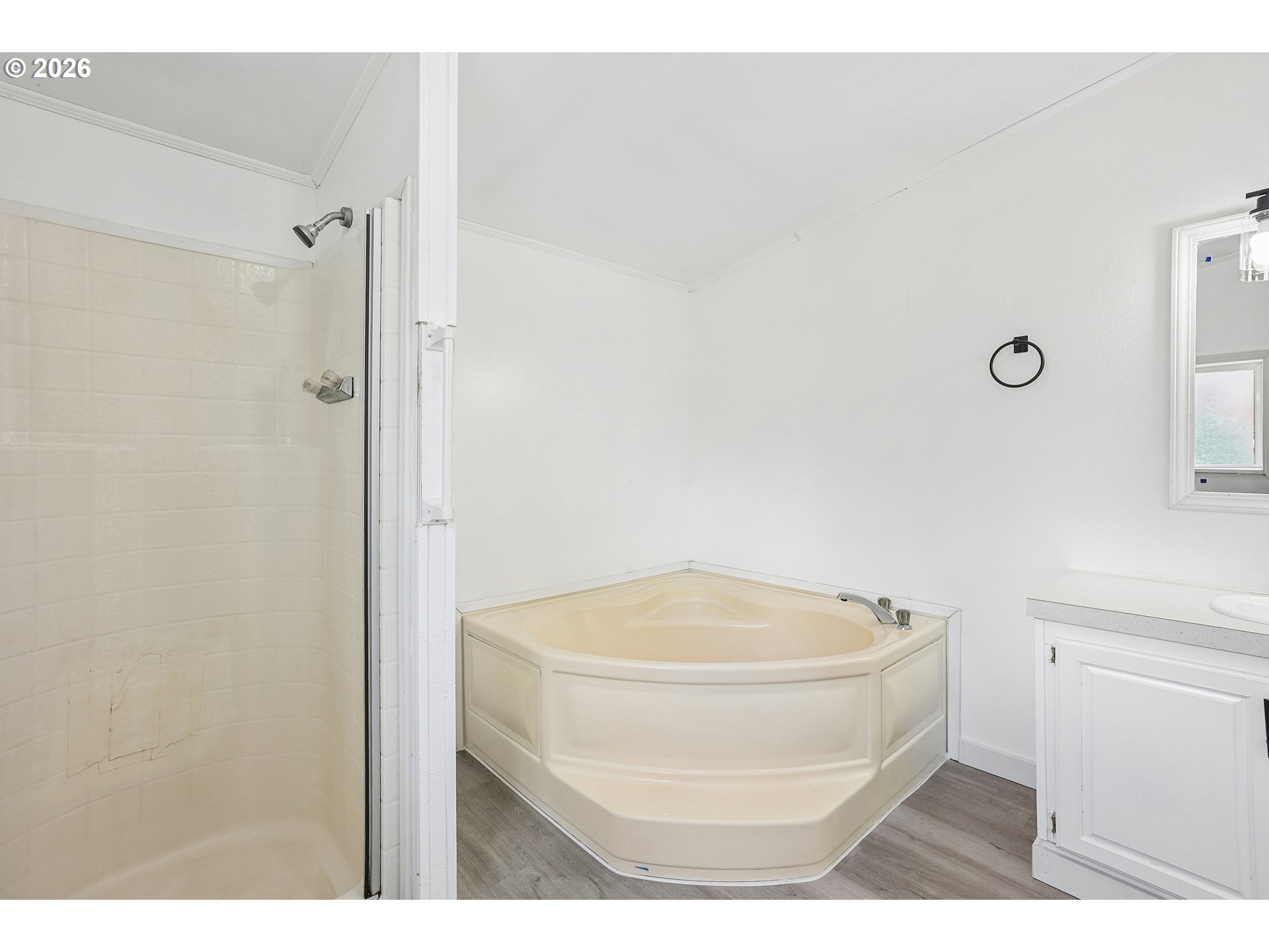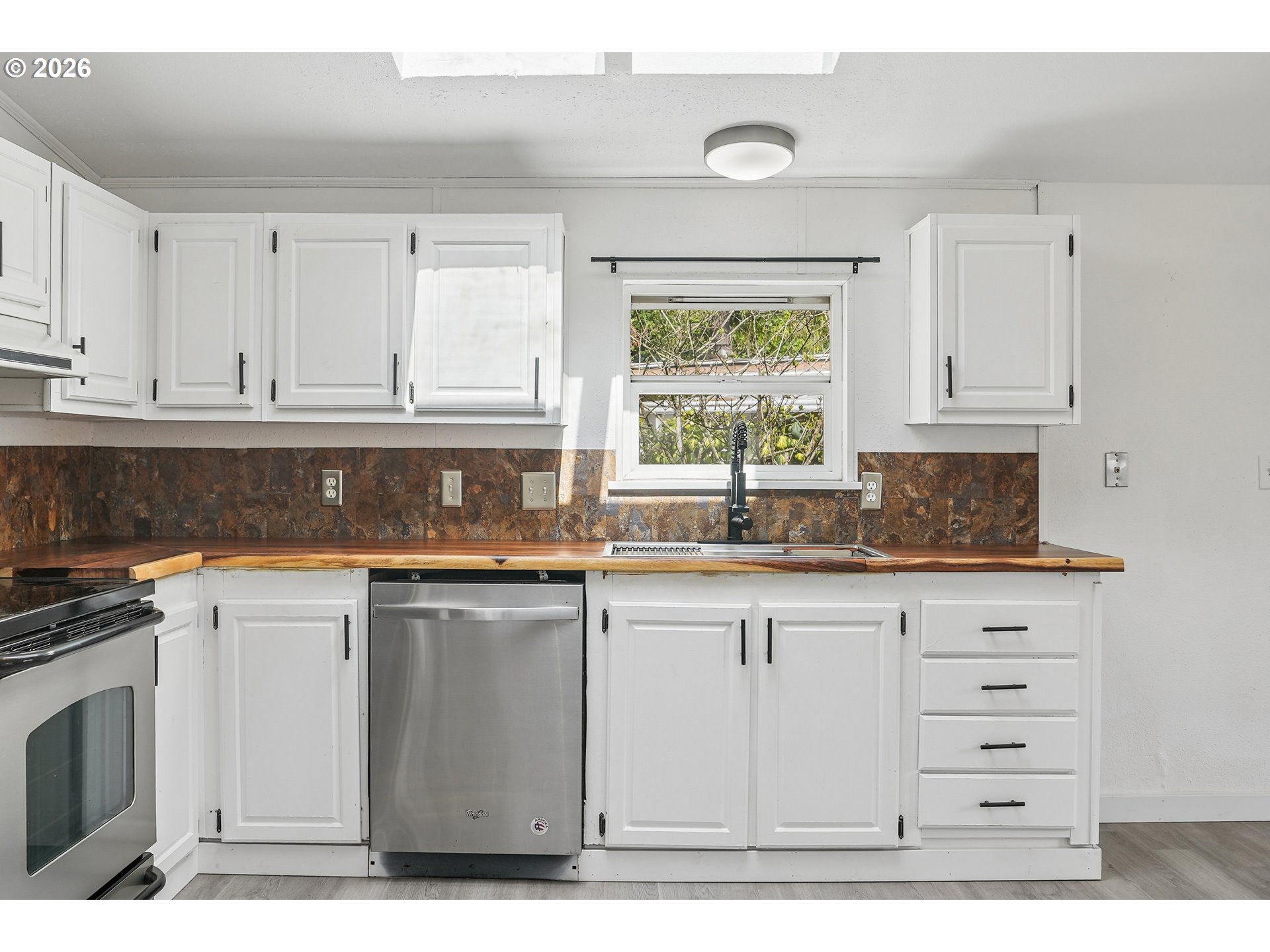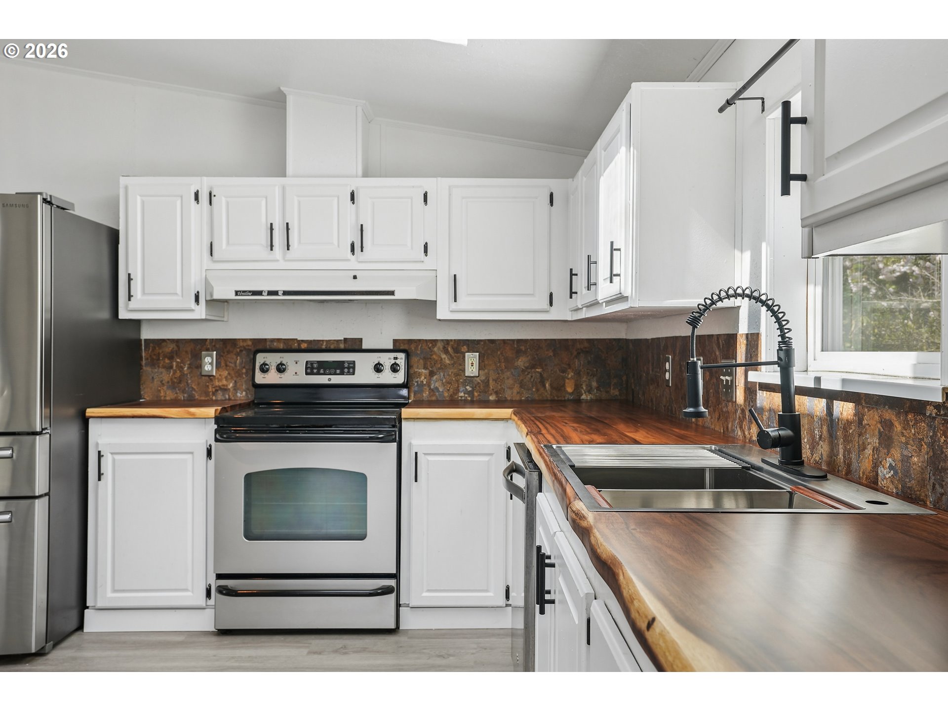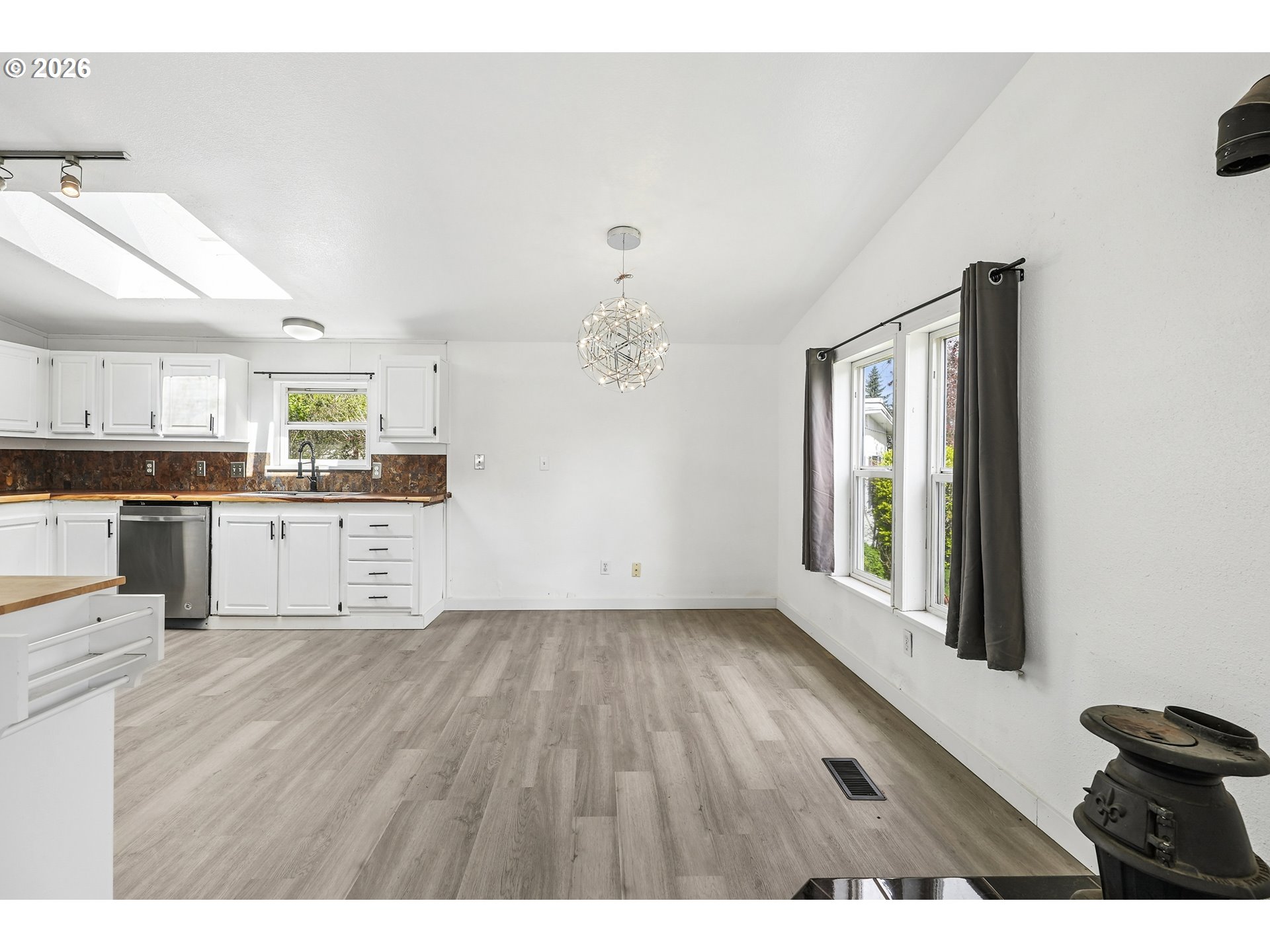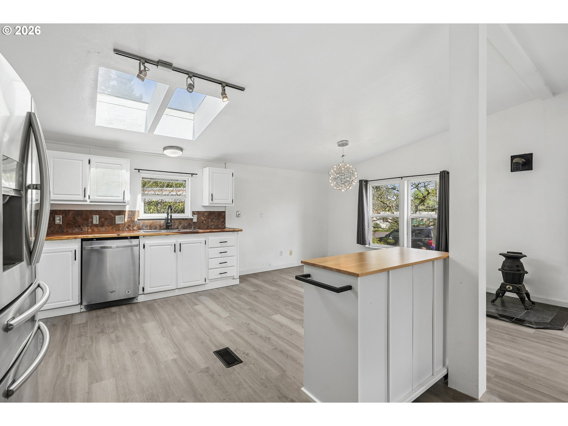 - Location, location, location! In the heart of Oregon City with shopping, dining and public transit just steps away. Step inside to this beautifully remodeled home that boasts 3 bedrooms, 2 bathrooms and over 1450 SQFT. Bright, open and thoughtfully updated, this kitchen is designed to impress. Vaulted ceilings with skylights flood the space with natural light, creating an airy, inviting feel throughout. Brand new flooring adds a fresh, modern touch, while the live edge wood counter tops bring warmth and character you won’t find in a standard remodel. Crisp white cabinetry offers ample storage and pairs beautifully with stainless steel appliances for a clean, timeless look. This spacious layout provides excellent flow for cooking, entertaining, or everyday living with plenty of counter space and a functional design that just makes sense. The large primary suite is very spacious and features vaulted ceilings, wall-to-wall closet space, a desk/make up area with an en suite bath that features a walk-in shower and a soaker tub with updated fixtures and lighting. Two additional bedrooms feature vaulted ceilings and double closets. The guest bath has a bathtub, updated fixtures and lighting and a fresh coat of paint. Outside you will enjoy the covered deck for year-round enjoyment, a large fully fenced yard with garden beds and a tool shed. The extra deep carport provides tandem two car parking plus another tool shed. All appliances stay. This house is completely move in ready and ready for you to relax and enjoy. Combined this with a welcoming all age and pet friendly community you'll enjoy access to fantastic amenities, including a clubhouse and a pool all for a low space rent of $995.